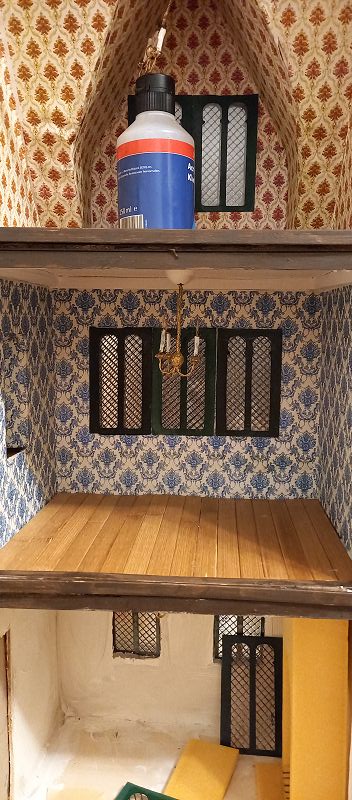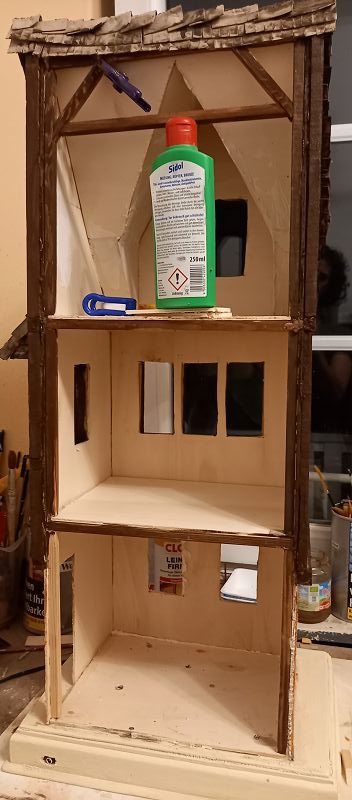 Außenrum wären wir dann schon mal fast soweit….. innen wirds noch dauern….Elektrik hat sich ein bisserl dahingezogen, aber die Tapeten kleben und die Wandvertäfelungen sind auch schon gechnipselt…… und a bisserl was zum nachspachteln innen……