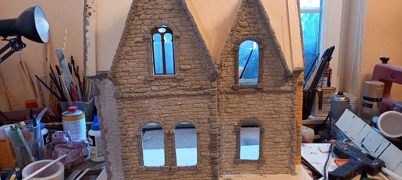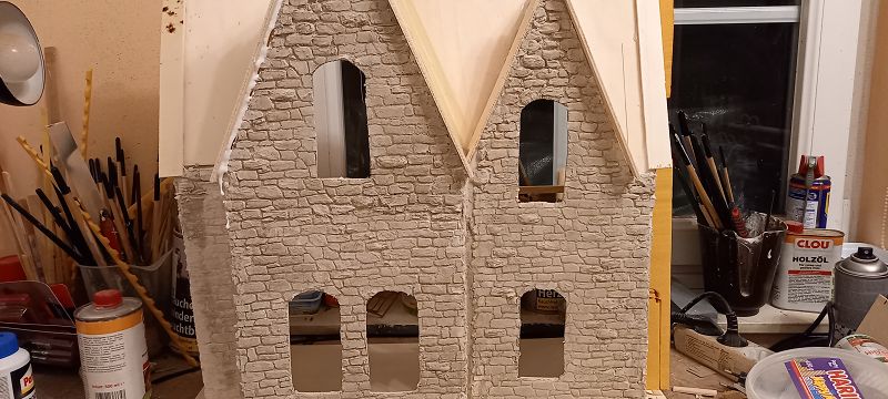 Es ist jetzt noch nicht wahnsinnig viel zu sehen aber ein bisserl was hat sich schon getan. Das Grundgerüst ist fertig, die Fassade … naja so halbwegs, die Steine haben sich ein wenig gezogen, viele Ecken sind eher nicht so geeignet für meine übliche Steinschablone, das war dann doch eher Einzelanfertigung. Nächster Halt Dach und Elektrik…… für die Bodenplatte muss ich mir noch was überlegen….. da brauchts noch Inspiration…….