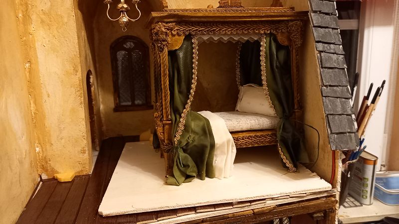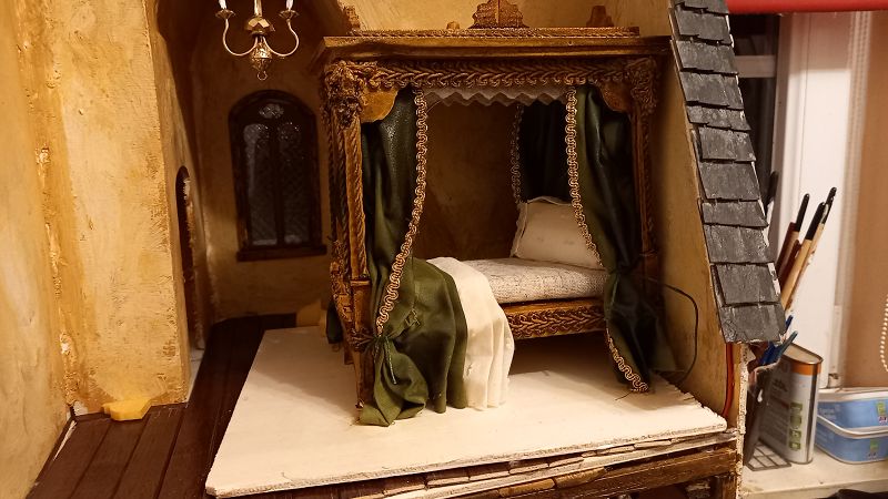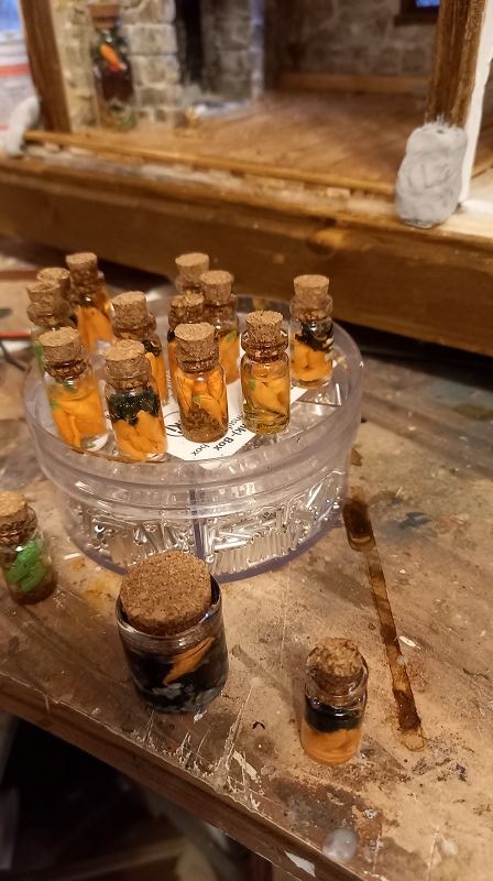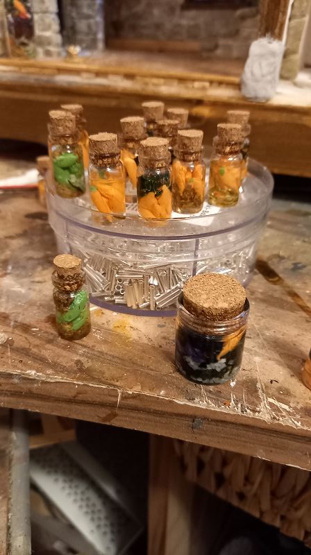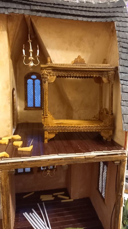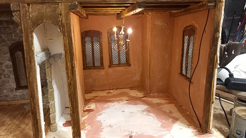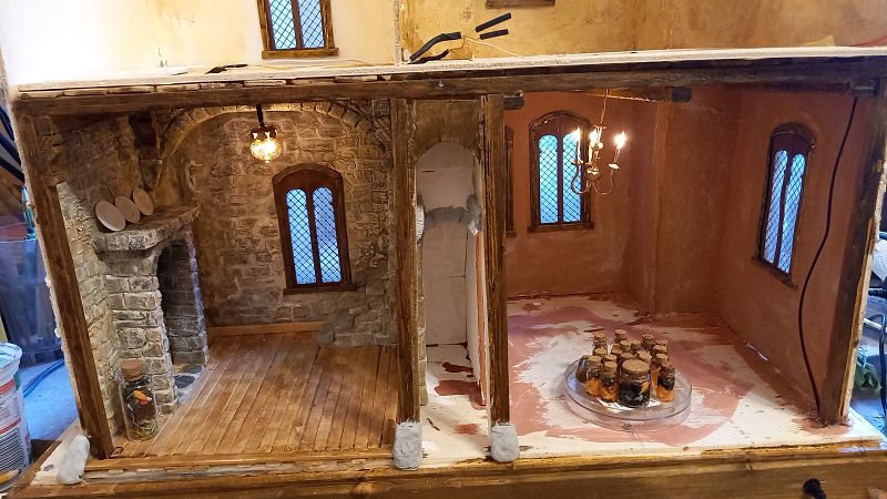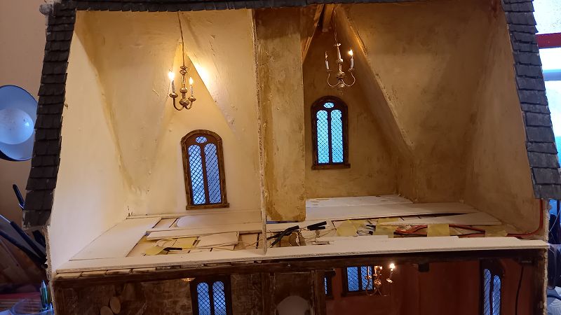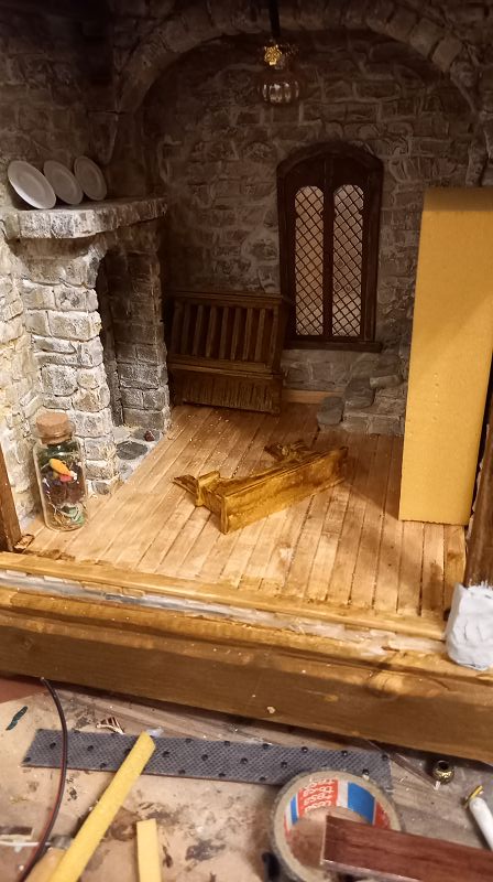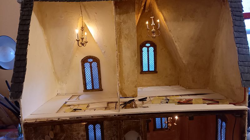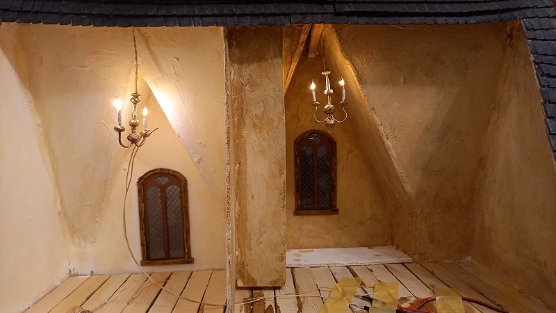 Der Strom fließt….3 Volt um genau zu sein …und der erste Krimskrams für die Innenausstattung liegt auch schon auf meinem Werktisch. Böden sind drinnen…..