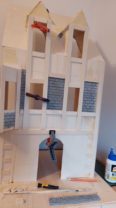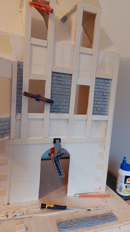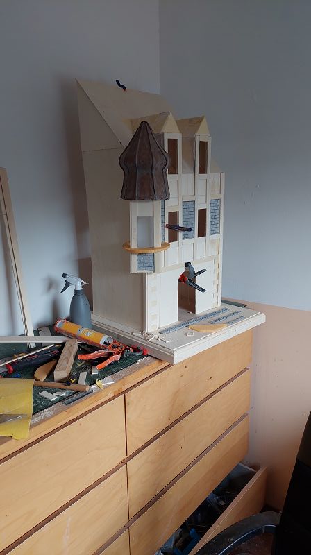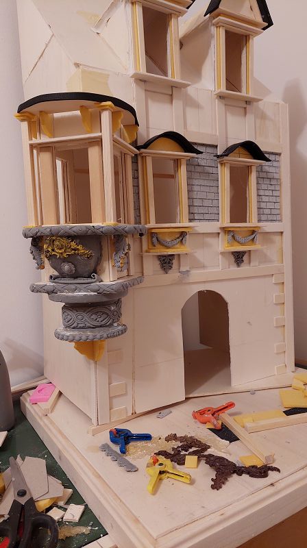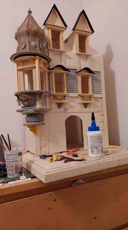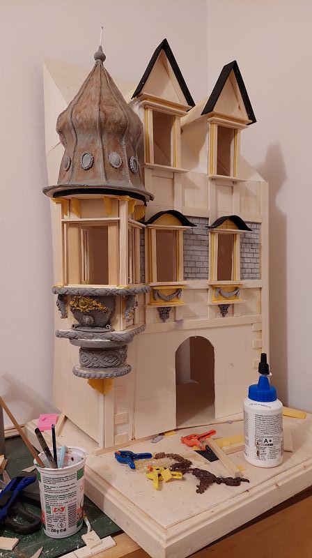Die Fassade wird diesemal ein wenig aufwändiger….könnte sich noch ein bisserl dahinziehen….. vorallem weil gerade weder Miniatur Atlanten, Büsten oder Putti in ansprechender Qualität verfügbar sind….. schaut wieder mal verdächtig nach selber machen aus……weil ich halt auch immer diese fixen Ideen hab….. naja …. werde ich mir was einfallen lassen müssen…..