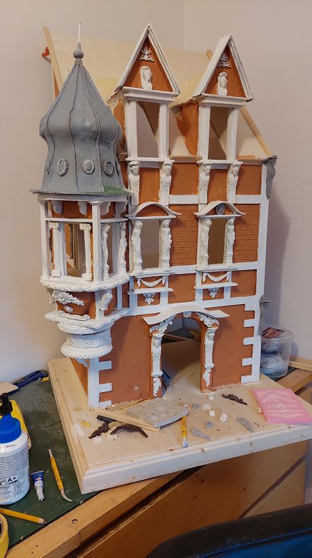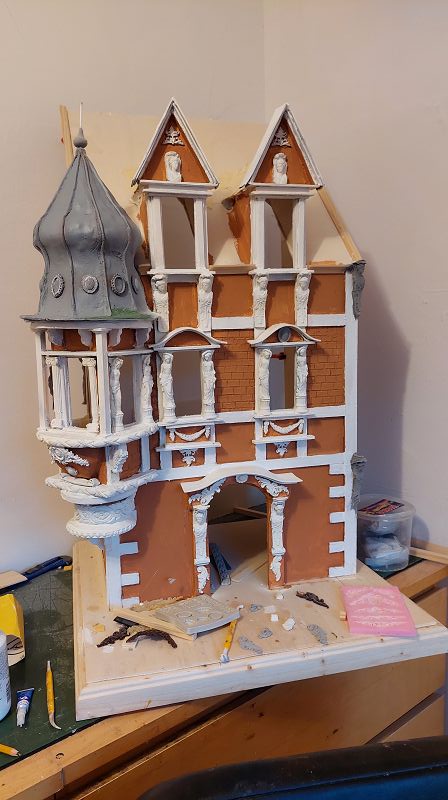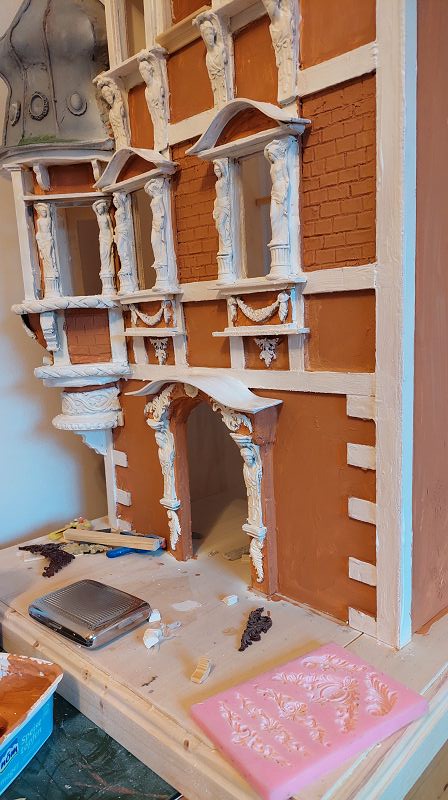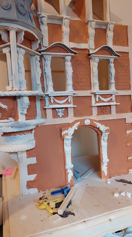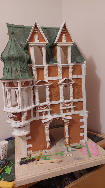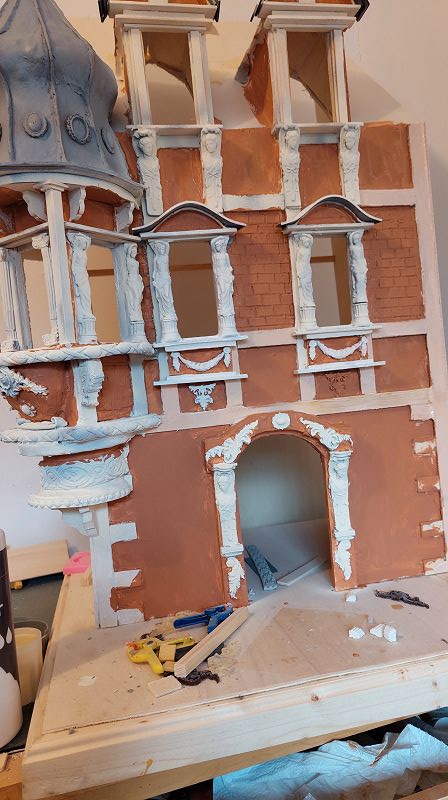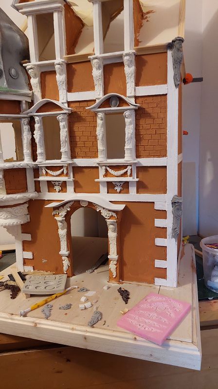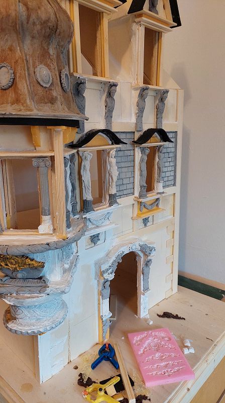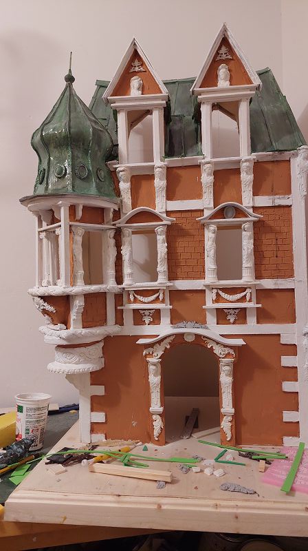 Fassade & Dach sind so 3/4 fertig…ich muss zugeben, es ist nicht ganz wenig Aufwand was ich mir da vorgenommen habe. Aber zumindest einen passenden Atlantenersatz habe ich gefunden. Das Kupferdach wird mich warscheinlich auch noch ein paar Nerven kosten, … naja gut, habs mir ja auch eingebildet. Anbei ein bisserl was zu stöbern, ich hoffe es gefällt
