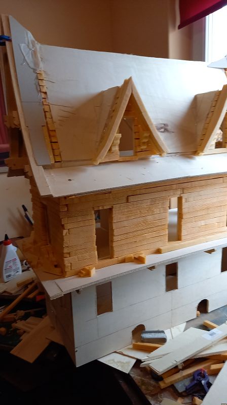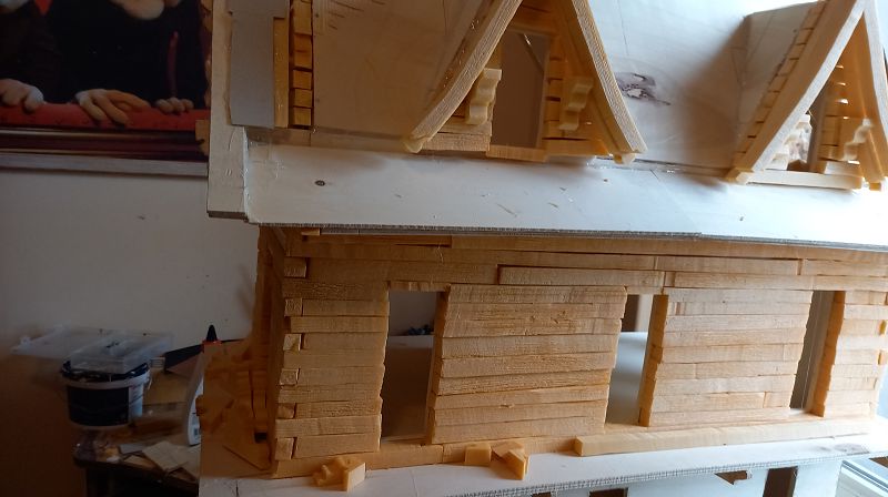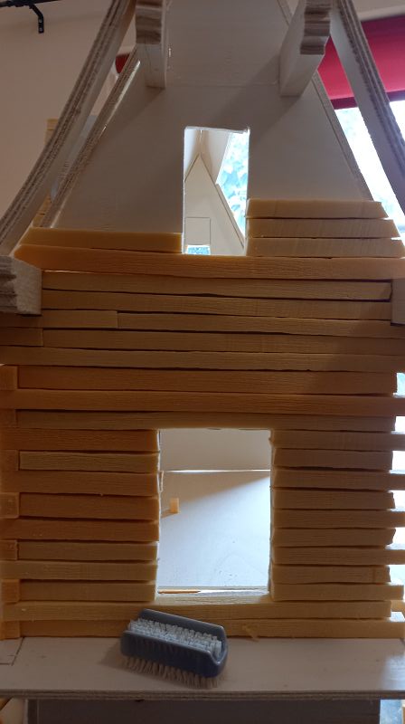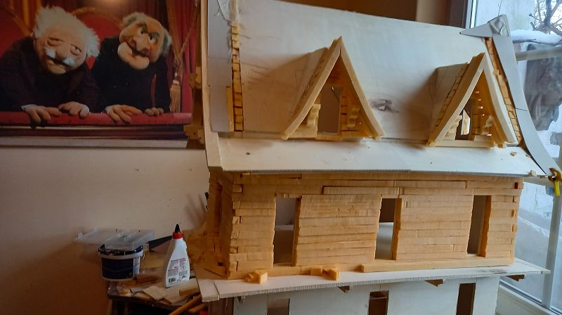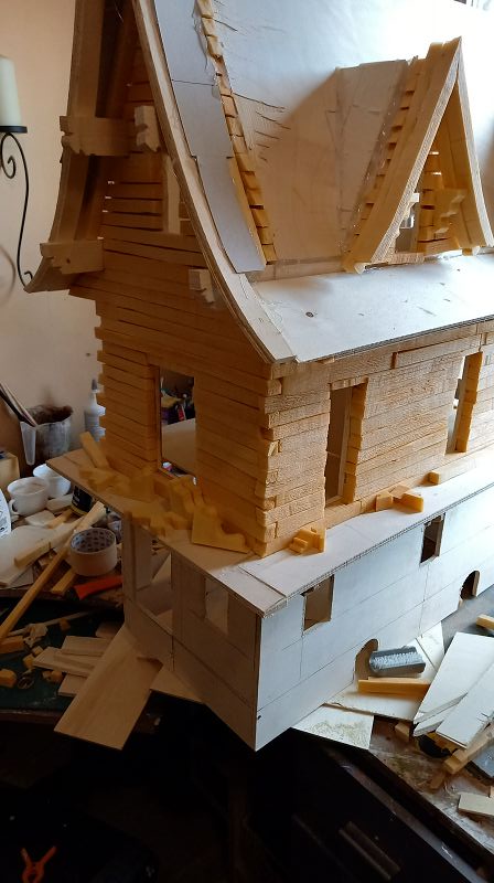 MEzzanottis Nr.:42 schießt ganz schön in die Höhe…..naja jetzt gehts eh wieder einen Schritt langsamer…. Die Balken sind gesetzt…… Dachschindeln werden benötigt…..viele….sehr sehr viele……